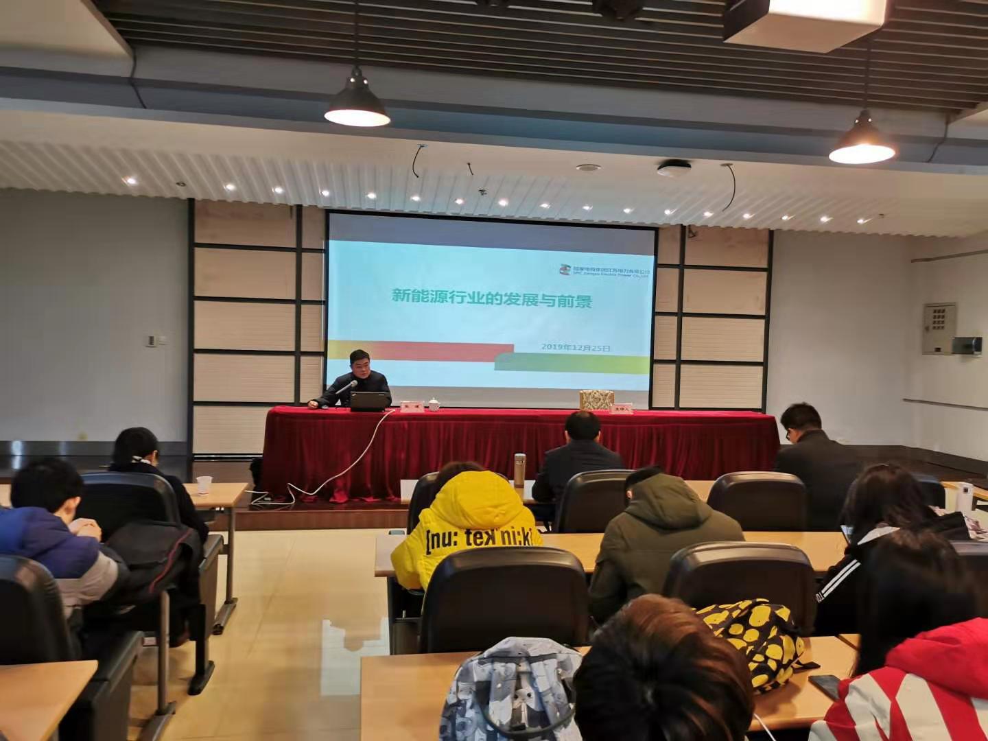 新能源行业现状如何,发展前景怎样,这些都是很多人关心的话题,12月27日上午,国家电投江苏电力有限公司无锡分公司总经理张谦高级工程师在行政楼一楼报告厅为能动师生作了题为“新能源行业的发展与前景”的学术讲座。讲座由成人文学