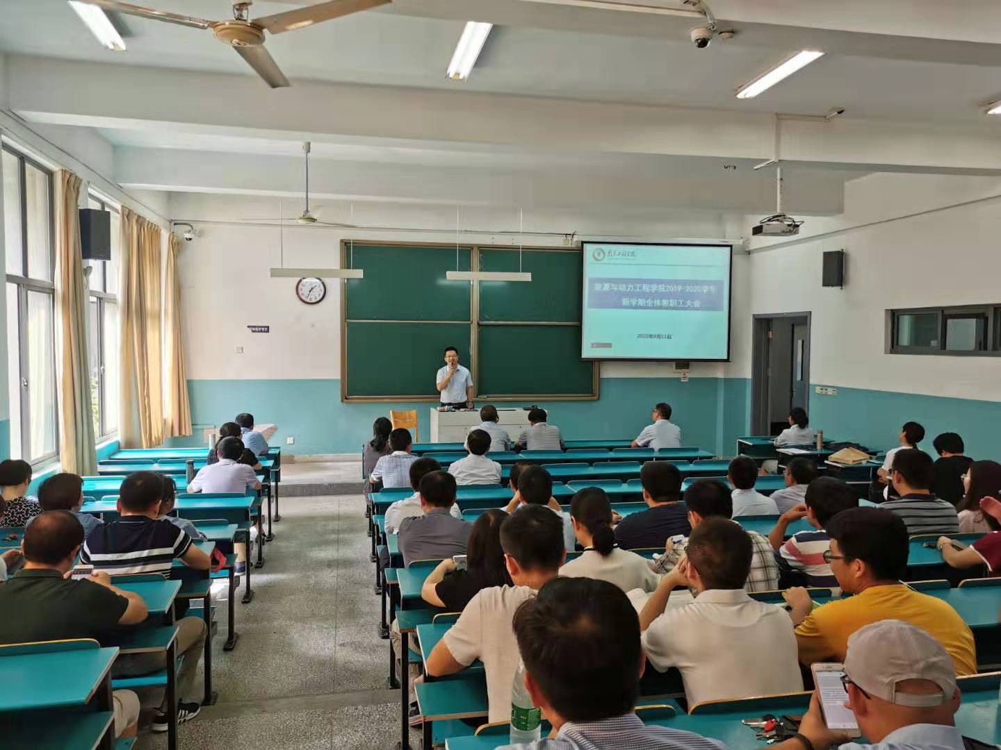 在经管楼D101室召开新学期全体教职工大会,会议由学院党委书记张祚键主持。