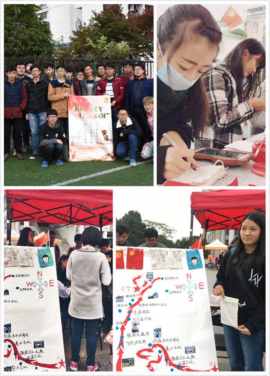 日前,该支部带着高校长征接力的照片在学校北大活广场设点宣传,吸引了不少同学驻足观赏,起到了良好的宣传效果。谈及感受,一位支部成员的自豪之情溢于言表,“虽然我们无法亲自重走长征路,但是利用微博这一新媒体平台,我们随着照片走过那两万五千里的征程。这一张张照片的传递过程,是我们对长征的回顾与宣传,是对长征精神的传递与弘扬,这将激励着我们不忘初心,走好未来新的‘长征路’”。