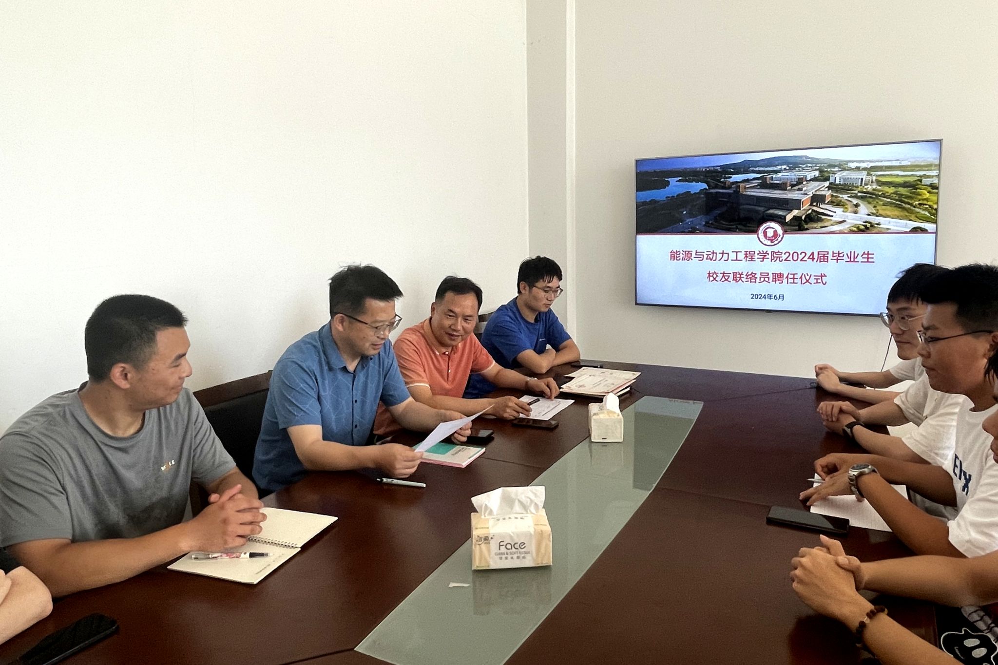 在至行苑·工程实践中心9-207会议室举行2024届毕业生校友联络员聘任仪式,学院党委书记张祚键、校友工作秘书及10余名校友联络员与会。