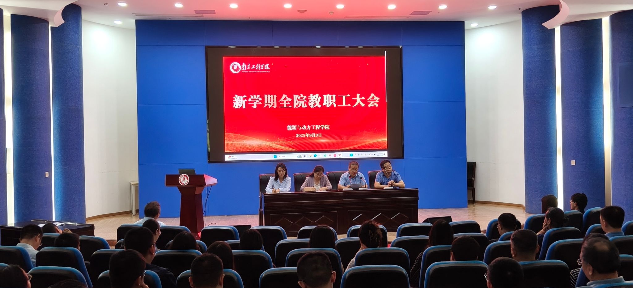 在图书馆报告厅召开新学期全体教职工大会,大会由学院党委书记徐艳主持。