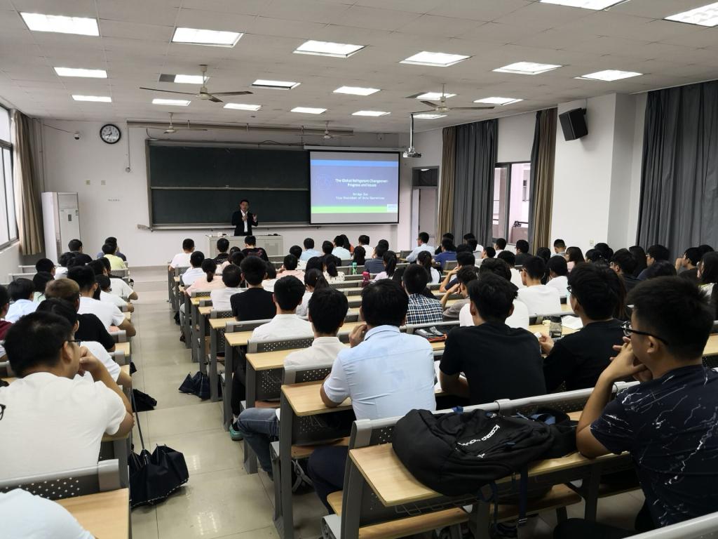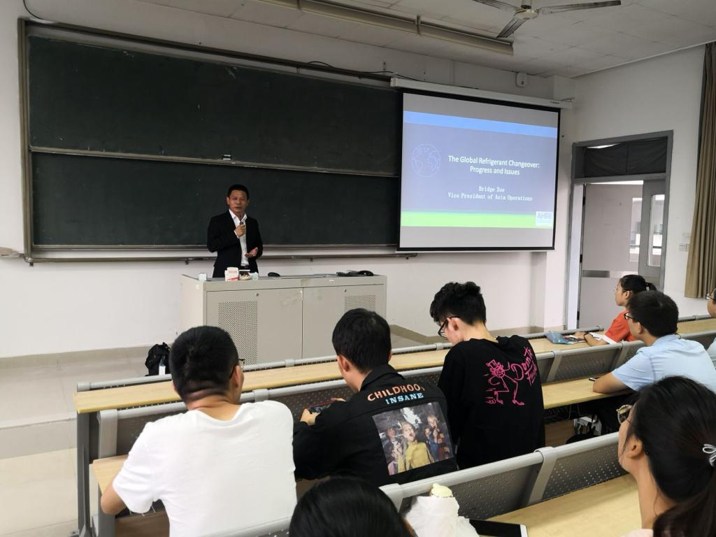 师生关于暖通制冷行业发展,国内外主流产品以及目前行业中最为重要的制冷剂更换等问题进行了报告。通过本次报告,师生的知识面得到了极大的扩展,同时也使学生更好的了解了行业的最新进展。报告结束后学生踊跃提问,学生参与度极高。