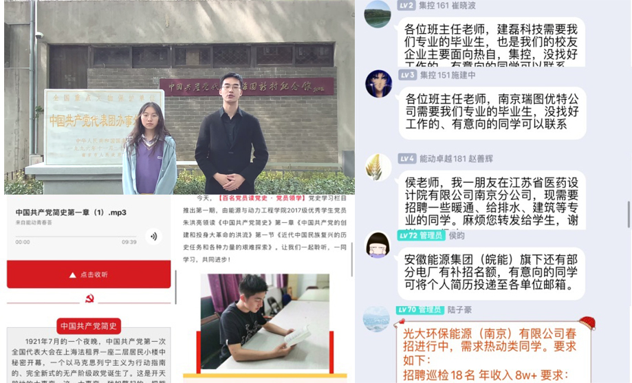 实事难事人人办,上好“服务课”。该院党委把“我为师生办实事”实践活动作为党史学习教育的重要内容和“着力点”,教工党员积极推荐毕业生就业单位150余家、协助就业困难学生落实工作单位32人次、学生党员“一对一”精准帮扶学业困难学生并签订“同舟计划”帮扶协议80余份。“因为自身硬件条件不是很理想,所以在找工作的时候四处碰壁,真的非常感谢学院崔老师,雪中送炭,给我介绍好几家单位……”最终被昆山鹿城垃圾发电有限公司录取的集控172班王宇航激动地说。“要扎实推动党史学习教育走深走实走心,就要把为师生办实事解难题作为根本落脚点,为全体师生多办看得见、摸得着、有感受的实事,真心实意为大家谋福利、办实事、解难题。”该院党委副书记陈培杰这样说道。
