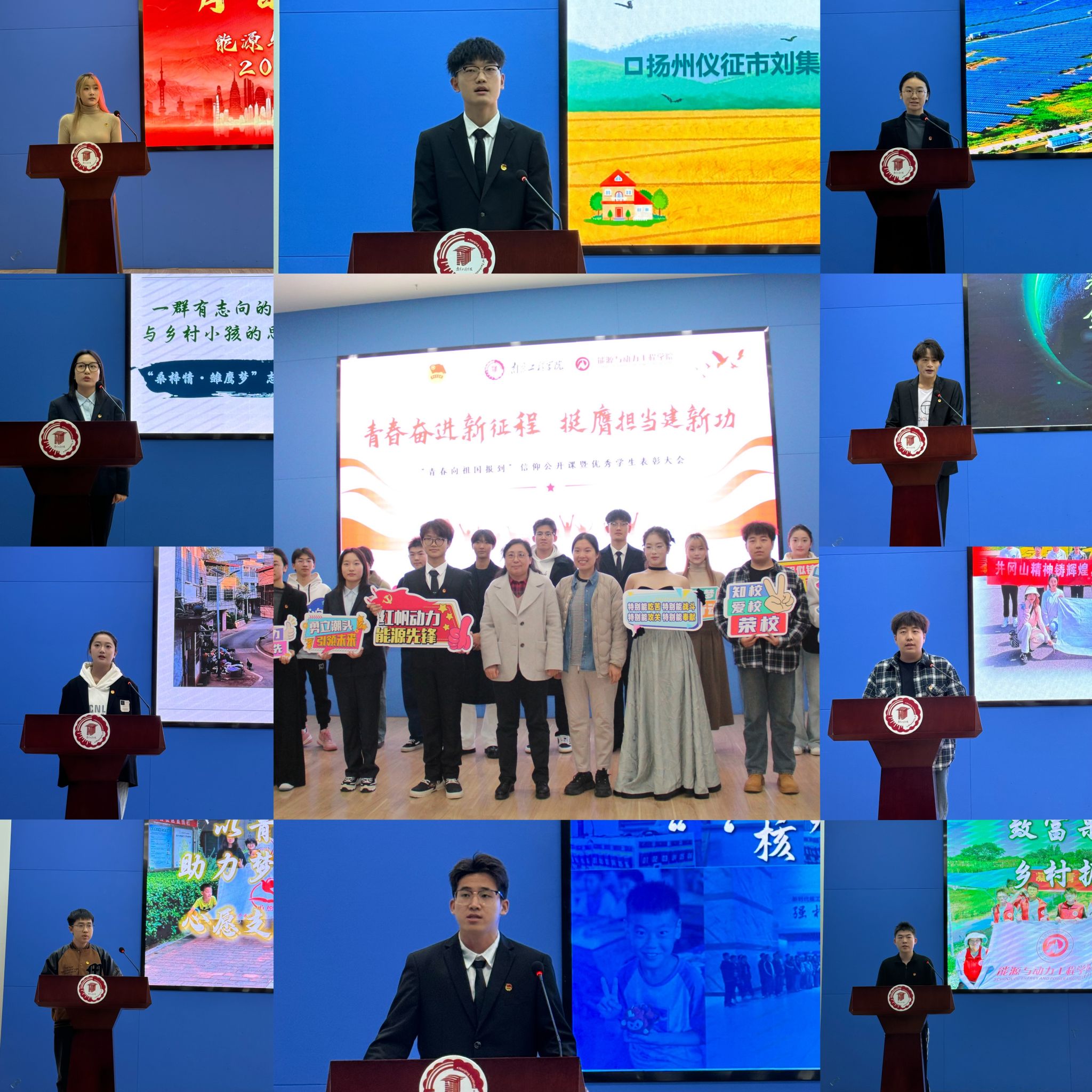 此次信仰公开课聚焦“青春向祖国报到”这一社会实践主题,学生代表围绕乡村振兴、党史学习、理论宣讲、专业强国、科技创新等专题,讲述他们奔赴全国各地受教育、长才干、做贡献的青春故事,激励同学们要以实际行动践行“请党放心、强国有我”的青春誓言。“我们想以我们青年之手托起孩子们的希望,以梦想之光照亮他们的未来。”“桑梓情·雏鹰梦”“圆梦大学”“心愿”等支教团队代表分享了他们前往徐州、江西、南京等地,针对留守儿童开展爱心支教公益活动,通过学业帮扶、文体活动、科技启蒙、传统文化、爱国教育等丰富多彩的课程,帮助“小候鸟们”开拓了视眼,在孩子们小小的心灵之中种下了梦想的种子;“田间筑梦·乡野扬帆”“致富果”等乡村振兴实践团队代表讲述实践成员以“村”为主路线,深入乡村了解特色产业、乡风文明、“三农”政策实施情况等内容,直观感受到了国家政策引导、科技创新驱动乡村从贫穷落后到繁荣兴旺的巨大变化;“用绿电造‘绿机’,海风‘吹’来新产业......”“能源报国行”专项实践团队代表讲述他们走进校友企业,了解海上风电的生产全过程,感受我国能源电力行业的高质量发展。同时他们也传达了校友们的期望,希望同学们能够聚焦国家能源发展战略,明确新时代电力人的责任使命,积极贡献南工程智慧;作为科技创新发言代表,来自核工程211班的马寅泉同学用自身的科创成长经历讲述了参加中国国际大学生创新大赛(2024)取得金奖的全过程,并鼓励同学们深入学习习近平总书记勉励中国国际大学生创新大赛参赛学生代表的回信精神,积极投身科技创新,为推动科技进步贡献青春力量。