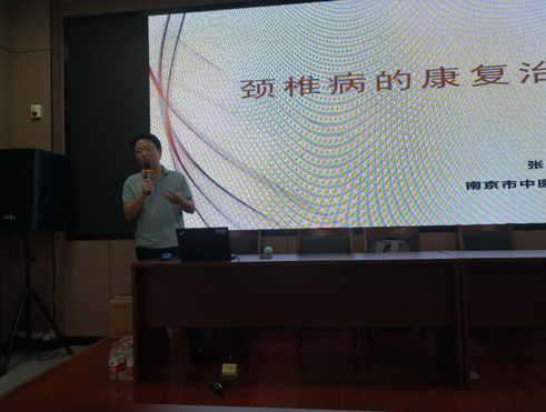 此次讲座特别邀请了南京市中医院康复中心治疗师长张冰斌副主任治疗师,为学校全体教师解读颈椎病的防治的相关问题,张冰斌医生就颈椎病的分类、发病机制和康复治疗等方面进行了全面、细致的讲解。张冰斌医生在讲座中特别指出,近年来,颈椎病的发病率逐渐上升,而且有年轻化的趋势,长时间低头看手机、对着电脑工作、姿势不正确等都可能引发颈椎病。因此,张冰斌医生建议教师在工作过程中要注意保持良好的姿势,尽量避免长时间对着电脑或手机,每工作一段时间后要适当休息并进行颈部肌肉的放松。