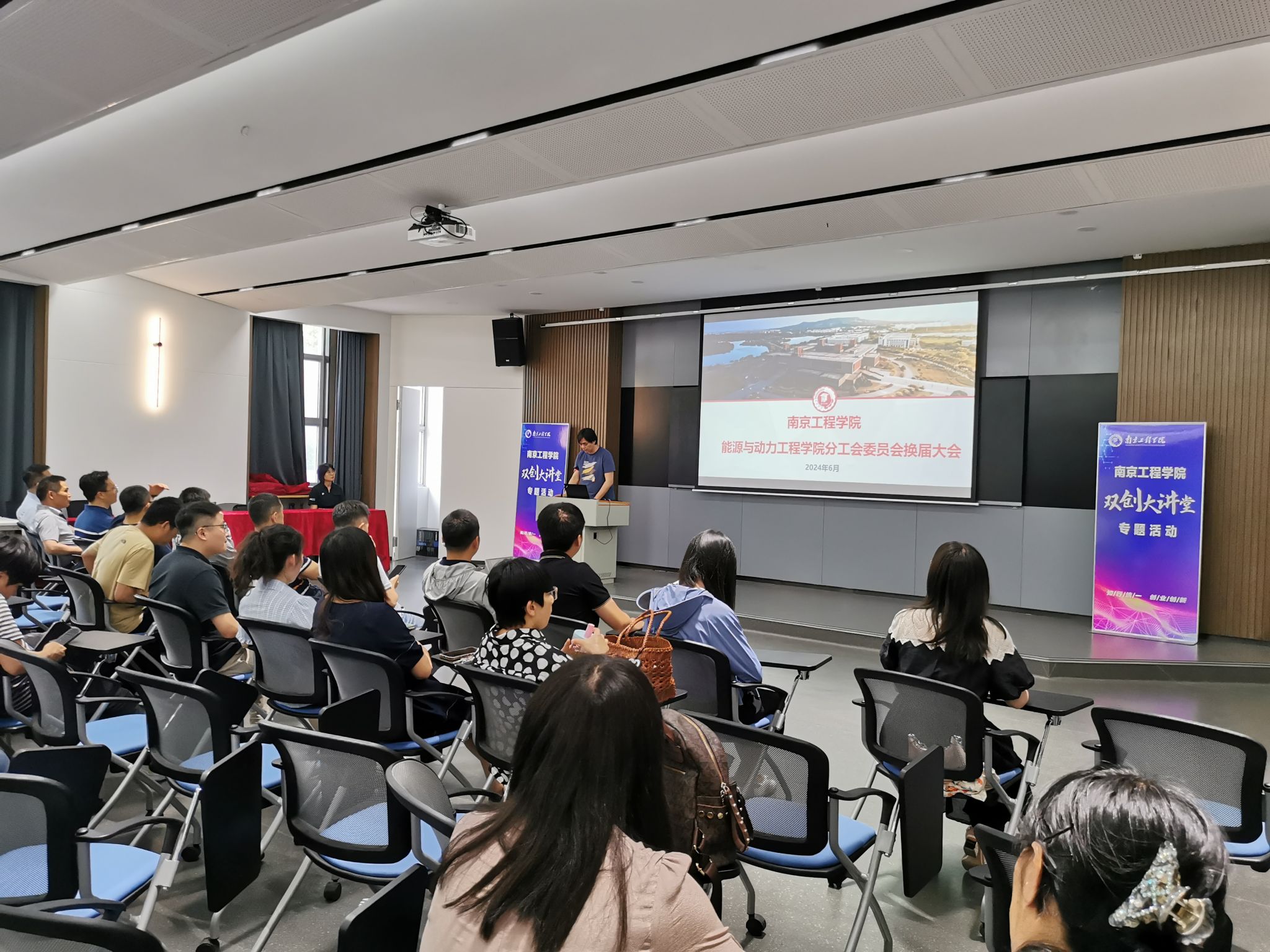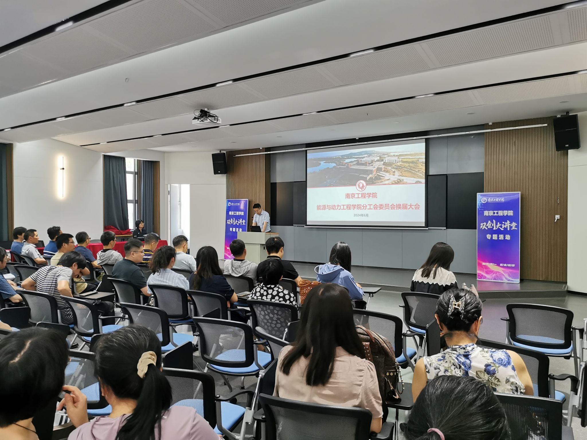 大会在雄壮的国歌声中隆重开幕,分工会主席上官剑峰代表学院上一届分工会委员会作了工作报告并汇报经费收支情况。他简要回顾了分工会工作,分工会在学院党委的坚强领导下,组织会员代表参加学校“两会”及学院的民主管理,举行各种丰富多彩的文体活动,积极加强分工会自身建设。五年来,学院分工会在全院教职工的大力支持和积极参与下,也取得了积极的成效,先后获得2020年江苏省工人先锋号,2019、2020、2021、2023年荣获成人文学