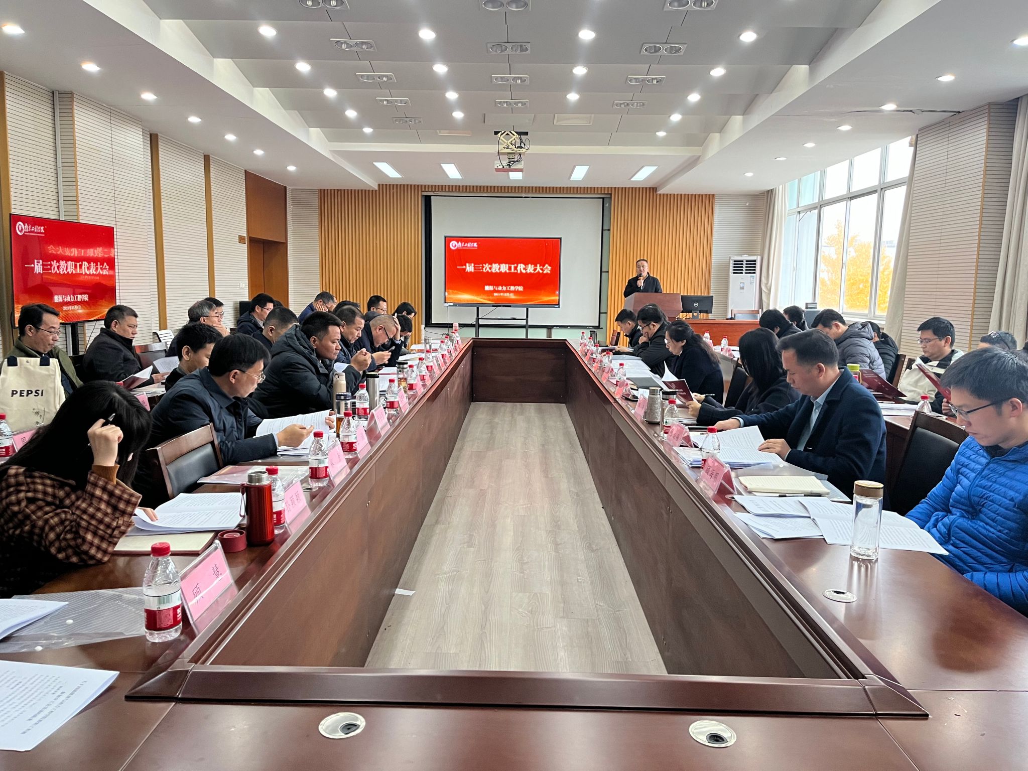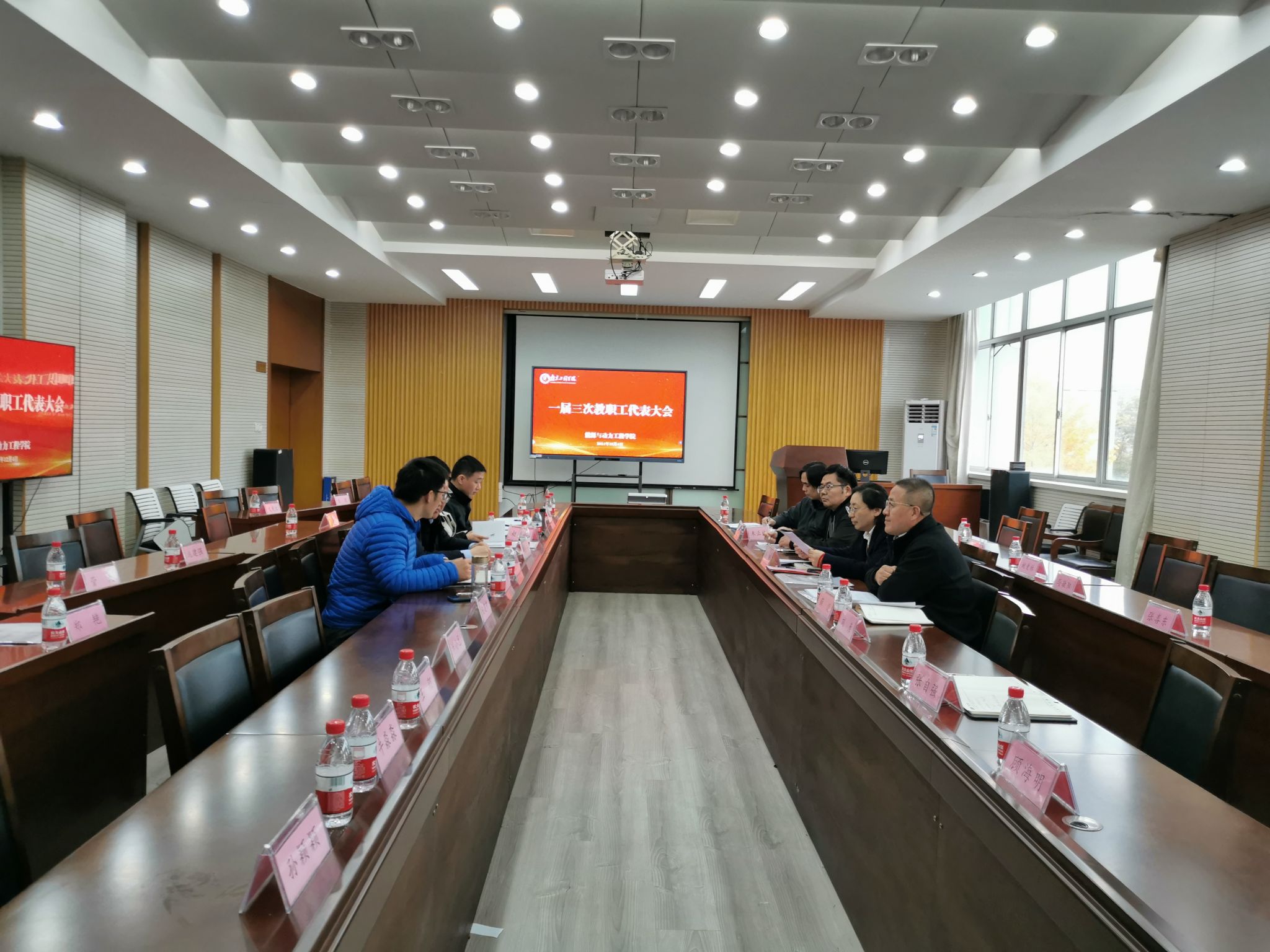 在至行苑·工程实践中心9-312会议室召开一届三次教职工代表大会,凝心聚力,共商学院高质量发展大计。校工会刘彦老师莅临观摩,学院党政领导、教职工代表共计40余人与会。