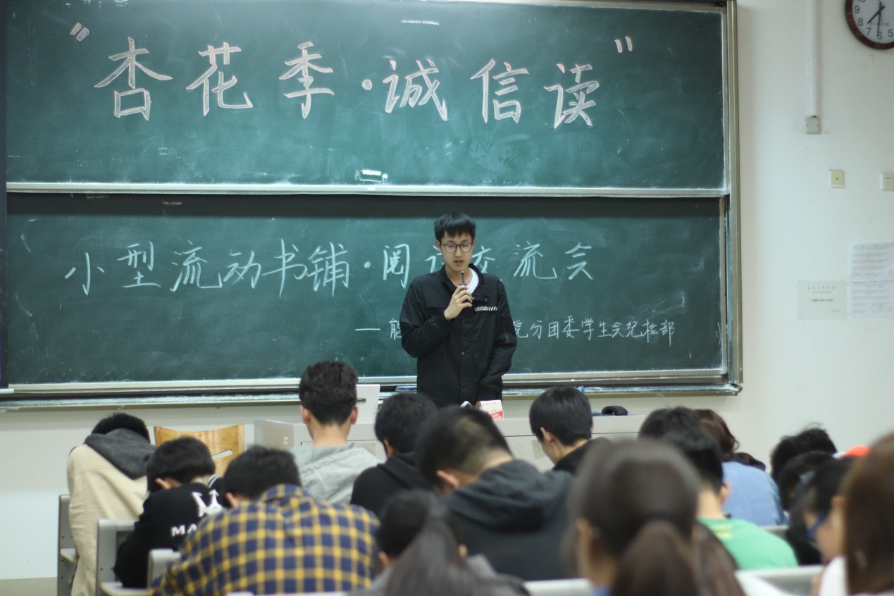 在东B302开展“杏花季,诚信读”的书友交流活动。