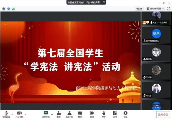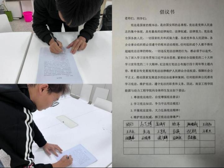 “宪法是国家的根本法,是治国安邦的总章程……”学院组织线上班会,由各班学习委员担任宪法宣讲员,就宪法的地位、宪法的作用、学习宪法的意义三个方面向大家普及有关宪法的知识,举办班级学习宪法知识竞答,进一步强化同学们对宪法的认识。同时,学院公众号“能动青春荟”适时推送学习宪法成人文学相关的文章,通过视频、文字资料激发同学们对宪法学习的兴趣。参与活动后,能动213班崔靖宇说道:“原来宪法与我们生活的方方面面息息相关,作为大学生,我们应当自觉维护宪法尊严,保证宪法的实施。”