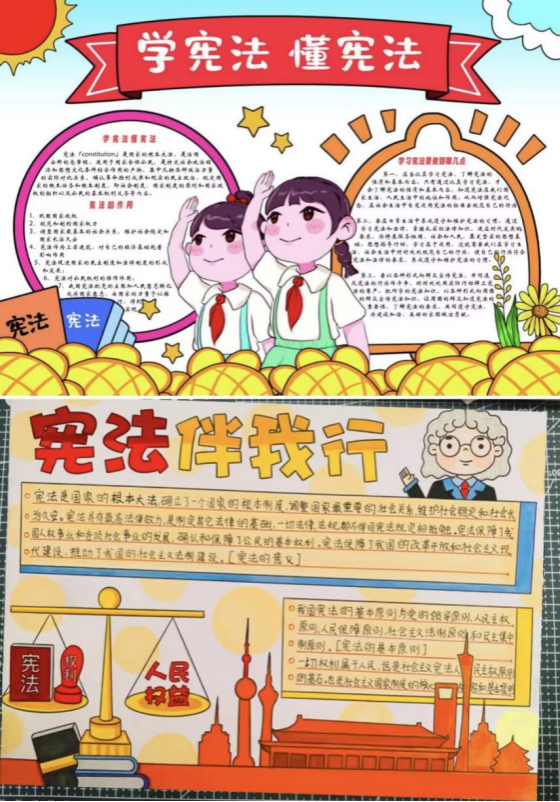 通过主题班会、知识竞答、演讲比赛和绘画大赛等形式开展宪法教育系列活动,引领同学们真正做到知宪法、守宪法、尊宪法。