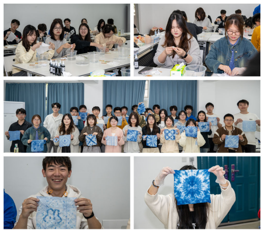 “扎染的过程就像是一场心灵的修行,需要专注与耐心。看着手中的布料逐渐变成美丽的花纹,那些焦虑与不安仿佛都随着染料一同消散了。”能动231班的邢佳奕同学分享道。此次活动不仅锻炼了学生的动手能力与创新思维能力,更让他们在劳动的触觉体验与团队协作中,学会了沟通与分享,建立了自信,收获了成就感,从而强化了对生活的掌控感。劳动与美育的完美结合,让学生在创造美的过程中,实现了心灵浸润与成长。