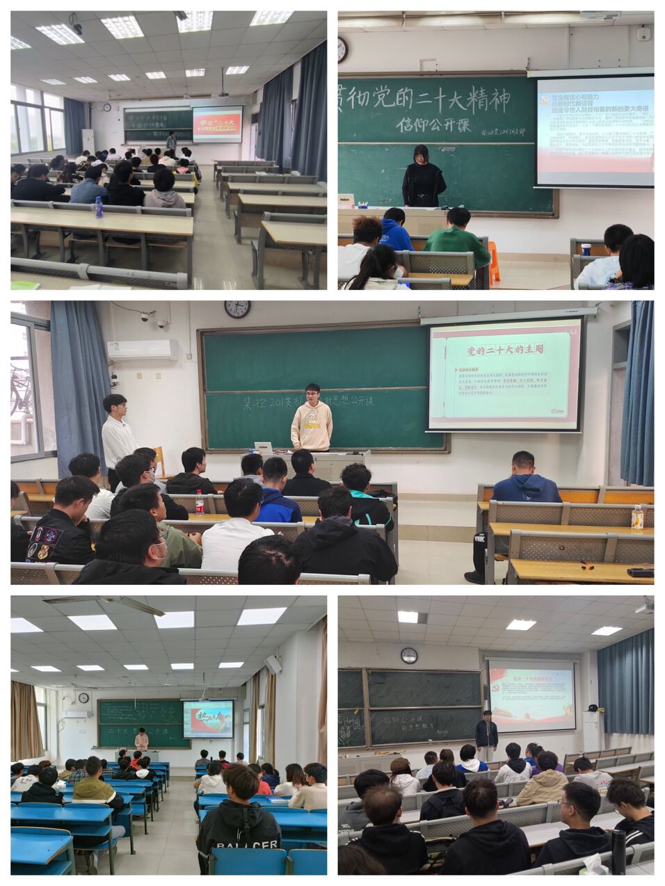 深学细悟党的二十大精神。为引导同学们体悟党的二十大精神的深刻内涵与真谛,该院组织各团支部开展学习党的二十大精神主题班会。能动类2205、集控212等班级重点学习了党的二十大报告中的新观点、新论断、新思想,围绕“三件大事”“两步走战略安排”“五个必由之路”等要点进行分析解读;针对报告中多处关于“精神”的论述,能动类2210、新能源201等班级带领同学们一起学习了伟大建党精神、斗争精神、钉钉子精神、劳动精神、人民首创精神等,引导同学们为实现党的二十大提出的目标任务而努力奋斗;还有不少班级通过观看视频,了解到了中国共产党在过去十年团结带领中国人民取得的非凡成就以及未来五年的发展蓝图。