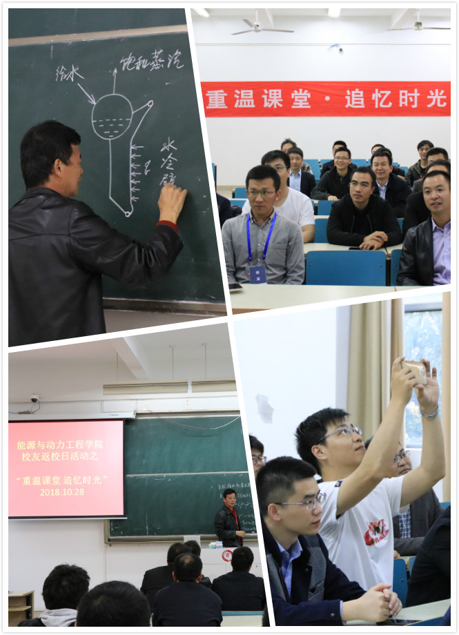 课堂承载着每一位学子最深刻的大学记忆。下午四点,学院在学海苑公共教学组团南馆A206带领各位校友重温课堂,再上一堂课。资深老教师辛洪祥为各位校友重温“锅炉原理课”。辛老师认真地书写板书,画图,讲解锅炉水循环的动力,阐述自然循环的基本原理。校友们认真聆听辛老师的授课,仿佛又回到了求学岁月。讲课结束后,校友们纷纷感叹,时光荏苒,多年后聆听老师上课,更加感恩老师当年的培养,是各位老师的辛勤教育才让他们在工作岗位上取得各自的成绩,母校难忘,师恩难忘。