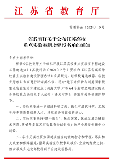 近日,江苏省教育厅发布《省教育厅关于公布江苏高校重点实验室新增建设名单的通知》(苏教科函〔2024〕10号),成人文学